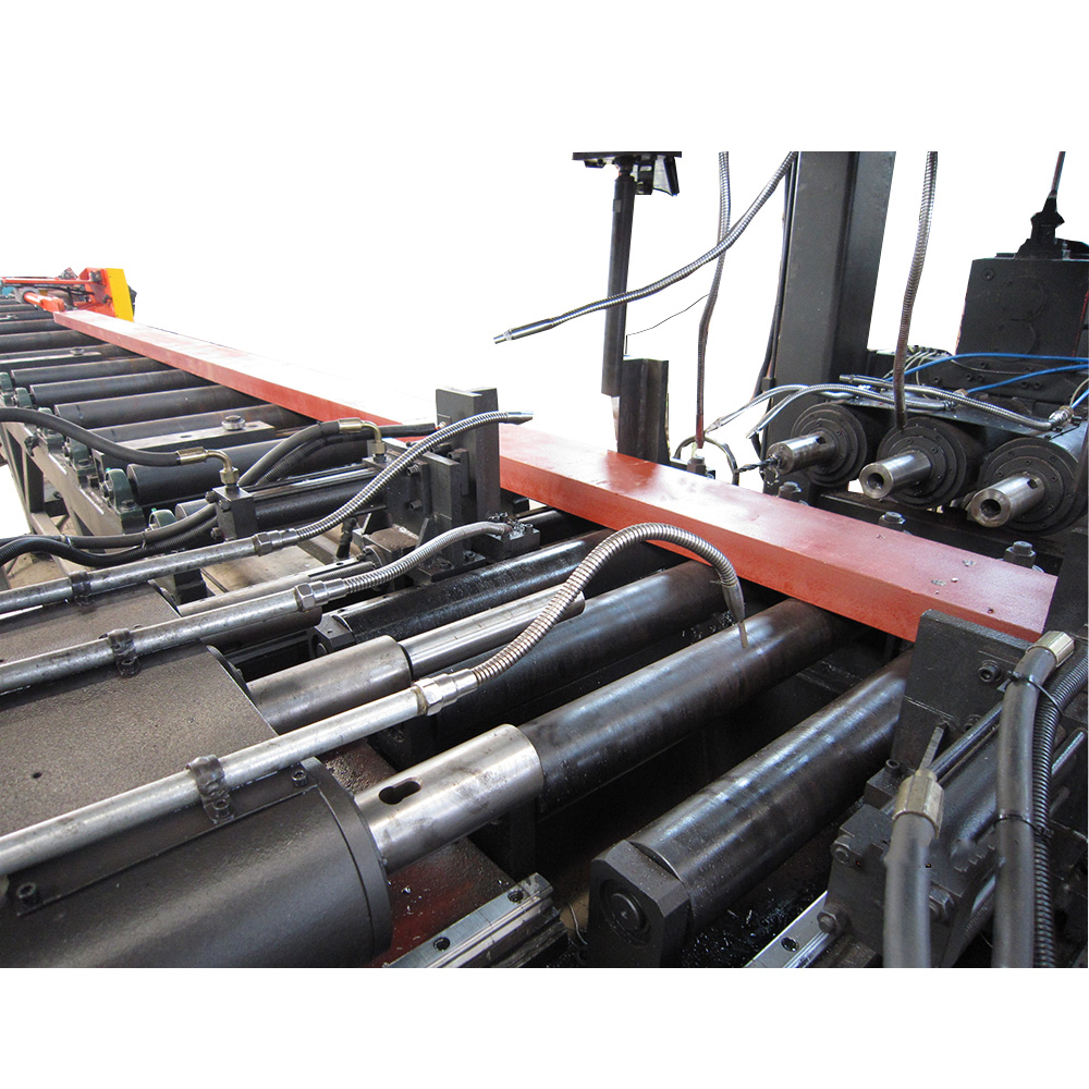 本機(jī)床主要用于H型鋼、槽鋼和箱型梁的鉆孔加工,廣泛用于立體車庫、鋼結(jié)構(gòu)建筑、橋梁、塔桅和網(wǎng)架等行業(yè)。4軸數(shù)控型鋼三維鉆床采用四個(gè)伺服電機(jī)實(shí)現(xiàn)2個(gè)垂直方向、1個(gè)水平方向和1個(gè)長度的鉆孔定位。3個(gè)鉆孔面上,每個(gè)面有3個(gè)鉆孔主軸,每個(gè)面上的3個(gè)鉆孔主軸由一臺(tái)變頻電機(jī)驅(qū)動(dòng),鉆孔主軸為自控行程鉆孔主軸,工件一次通過設(shè)備后三個(gè)面上的孔均可加工完畢,效率高,孔位精度高,是鋼結(jié)構(gòu)制造業(yè)中保證質(zhì)量的必不可少的設(shè)備。