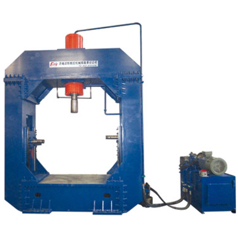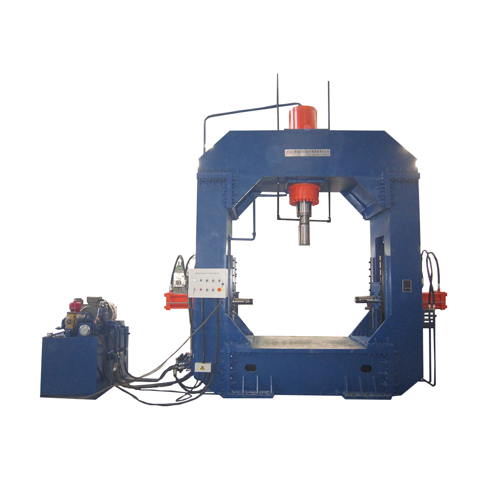 設(shè)備由龍門式液壓機(jī)、液壓站、控制柜、電動托架、托架導(dǎo)軌等部分組成。